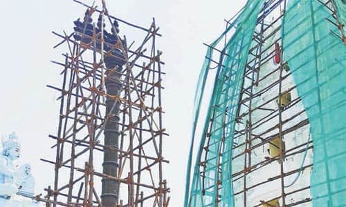 இங்கு, 2007ம் ஆண்டு மஹா கும்பாபிஷேகம் நடந்தது. அதன்பின், 16 ஆண்டுகள் கழித்து 2024ம் ஆண்டு கும்பாபிஷேகம் நடத்த ஹிந்து சமய அறநிலையத் துறையினர் முடிவு செய்தனர். அதன்படி, சென்னையைச் சேர்ந்த லட்சுமி நரசிம்மன் என்பவர் மூலம் 25.80 லட்சம் ரூபாய் மதிப்பில் சீரமைப்பு பணிகள் நடத்த உத்தரவிட்டதை அடுத்து, 2023 ஜூலை மாதம் பணிகள் துவங்கி நடந்து வருகின்றன. இதில், கோவில் கொடிமரத்தின் மீது உள்ள செப்பு கவசங்களை அகற்றி, உபயதாரர் செலவில் தங்க நீர் தோய்த்து மீண்டும் பொருத்தும் பணிக்காக, நேற்று கவசம் அகற்றும் பணி துவங்க இருந்தது. இதையடுத்து, கொடிமர செப்பு கவசத்தை அகற்றி, 230 கிராம் தங்கத்தில் செய்கூலி, சேதாரம், கச்சா பொருட்கள் உட்பட அனைத்து பணிகளும் 19.55 லட்சத்தில் மேற்கொள்ள ஹிந்து சமய அறநிலையத்துறையினர் உத்தரவிட்டனர். இதில், ஹிந்து சமய அறநிலையத்துறை துணை ஆணையர் கருணாநிதி மற்றும் நகை ஆய்வாளர் ஜம்குமார், நரசிங்கபுரம் லட்சுமி நரசிம்மர் கோவில் செயல் அலுவலர் பிரபாகரன் ஆகியோர் முன்னிலையில், நேற்று கொடிமரத்திற்கு பூஜை போடப்பட்டது. அப்போது, கொடிமர செப்பு கவசங்கள் சீரமைப்பு பணிகள் மேற்கொள்ள வந்த, ஸ்தபதிகளிடம் அதிகாரி மேற்கொள்ளவுள்ள பணிகள் குறித்து கேட்டனர். இதிற்கு பதிலளித்த ஸ்தபதிகள், செப்பு கவசங்களை கழற்றி, சுத்தம் செய்து கெமிக்கல் பவுடரால் முலாம் பூசப்படும் என, மட்டும் தெரிவித்தனர். தங்கத்தை பயன்படுத்தாமல், கெமிக்கல் பவுடர் மூலம் தான் பணி மேற்கொள்ளப்படும் என தெரிவித்தனர். இதை தொடர்ந்து, 230 கிராம் தங்கத்தால் பணிகள் மேற்கொள்ள வேண்டுமென உத்தரவிட்டுள்ள நிலையில், நீங்கள் கெமிக்கல் மட்டும் பயன்படுத்துவதாக தெரிவித்துள்ளீர்கள். எனவே, பணிகளை நிறுத்துங்கள் என, நகை ஆய்வாளர் மற்றும் துணை ஆணையர் உத்தரவிட்டனர். ஹிந்து சமய அறநிலையத் துறை உயர் அதிகாரிகளிடம் கலந்தாலோசித்து, அதன்பின் பணிகள் துவங்க நடவடிக்கை எடுக்கப்படும் என, தெரிவிக்கப்பட்டதை அடுத்து, கொடிமர செப்பு கவசம் சீரமைப்பு பணி, தேதி குறிப்பிடாமல் ஒத்தி வைக்கப்பட்டது.