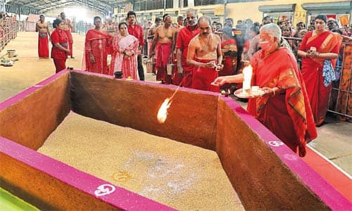 சித்தர் பீடம் வந்த ஆதிபராசக்தி ஆன்மிக இயக்க தலைவர் லட்சுமி பங்காரு அடிகளார், ஆதிபராசக்தி அம்மன் மற்றும் பங்காரு அடிகளாரை வணங்கி, சித்தர் பீடத்தில் அமைக்கப்பட்ட யாக குண்டத்தில், சிறப்பு வேள்வி பூஜையை துவக்கி வைத்தார். ஆதிபராசக்தி ஆன்மிக இயக்கத் துணைத்தலைவர் செந்தில்குமார் உள்ளிட்ட பலர் பங்கேற்றனர். அதன்பின், நீண்ட வரிசையில் வந்த செவ்வாடை பக்தர்கள், யாக குண்டத்தில், சமத்து குச்சி, நவதானியம் உள்ளிட்ட பொருட்களை போட்டு, சுவாமியை வணங்கினர். தமிழகம் மட்டும் இன்றி, பல்வேறு மாநிலங்களில் இருந்து, ஏராளமான செவ்வாடை பக்தர்கள் பங்கேற்றனர். பக்தர்களுக்கு, அன்னதானம், பிரசாதம் வழங்கப்பட்டது.