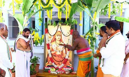 காளஹஸ்தி; திருப்பதி மாவட்டம் ஸ்ரீகாளஹஸ்தி சிவன் கோயிலில் ஜகத்குரு ஆதிசங்கரர் ஜெயந்தி விழாவை முன்னிட்டு கோயில் வளாகத்தில் உள்ள பிரம்மா கோயில் தேவஸ்தான வளாகத்தில் உள்ள ஸ்ரீ ஜகத்குரு ஆதிசங்கராச்சாரியாரின் திருவுருவப்படம் அமைக்கப்பட்டு சிறப்பு பூஜைகள் நடத்தப்பட்டு தீப தூபம் சமர்பித்து பிரசாதங்கள் வழங்கப்பட்டது. இந்த நிகழ்ச்சியில் கோயில் தலைமை குருக்கள் கருணாகர குருக்கள் மற்றும் கோயில் அறங்காவலர் குழு தலைவர் அஞ்சூரு தாரக சீனிவாசுலு கோயிலின் செயல் அலுவலர் நாகேஸ்வரராவ் , கோயில் உதவி ஆணையர் மல்லிகார்ஜுன பிரசாத் கண்காணிப்பாளர் நாகபூஷணம் யாதவ், கோயில் ஆய்வாளர் ஹரி யாதவ் மற்றும் கோயில் அலுவலர்கள் மற்றும் பணியாளர்கள் பங்கேற்றனர்.