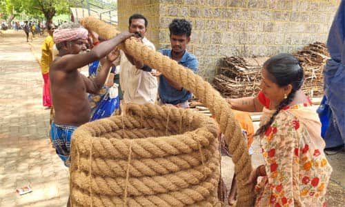 கருமலை கோயிலுக்கு சிங்கம்புணரியில் தயாரான 260 அடி நீள தேர் வடம்