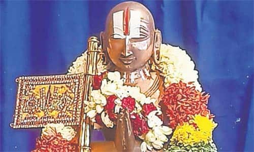 மாமல்லபுரம்; வைணவ ஆன்மிக துற வியாக, ராமானுஜர் விளங் கினார். சித்திரை மாதம், திருவாதிரை நட்சத்திர நாளில், ஸ்ரீபெரும்புதுாரில் அவதரித்தார். வைணவ பக்தர்களில் உயர்ந்தவர், தாழ்ந்தவர் என்ற பாகுபாடு இல்லை என விழிப்புணர்வு ஏற்ப டுத்தி, புரட்சி துறவியாக சிறப்பு பெற்றார். அவர் அவதரித்த நாளான நேற்று, மாமல்லபு ரம் ஸ்தலசயன பெருமாள் கோவிலில், ஸ்தலசயனர், தேவியர், ராமானுஜர் ஆகி யோருக்கு, காலை சிறப்பு அபிஷேகம், திருமஞ்சன வழிபாடு நடந்தது. திருவாய்மொழி சாற் றுமறை சேவையாற்றி, பெருமாள் ராமானுஜருக்கு பரிவட்ட மரியாதை அளித் தார். பக்தர்கள் தரிசித்து வழிபட்டனர். குன்னத் துார் பக்தர்கள், உபய உற் சவமாக நடத்தினர்.