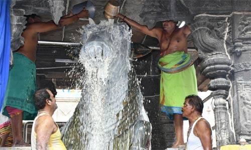 திருவண்ணாமலை: அருணாசலேஸ்வரர் கோவிலில், ஆவணி சனி பிரதோஷத்தை முன்னிட்டு, ராஜகோபுரம் அருகே உள்ள பெரிய நந்திய பகவானுக்கு பால் அபிஷேகம் நடந்தது.