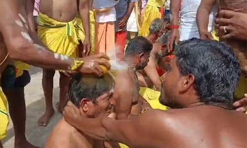 வீரலட்சுமி அம்மன் கோவிலில் தலையில் தேங்காய் உடைத்து பக்தர்கள் நேர்த்திக்கடன்