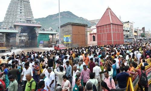 திருவண்ணாமலை; திருவண்ணாமலையிலுள்ள அண்ணாமலையார் மலையை பவுர்ணமி நாட்களில் ஏராளமான பக்தர்கள் கிரிவலம் செல்வர். ஆவணி மாத பவுர்ணமி திதி நேற்று அதிகாலை, 3:07 மணிக்கு தொடங்கியது. நேற்று முன்தினம் இரவு முதலே, பல்வேறு பகுதியில் இருந்து பக்தர்கள் திருவண்ணாமலைக்கு வருகை தந்து, கிரிவலம் செல்ல தொடங்கினர். ஆந்திரா, கர்நாடகா, தெலுங்கானாவில் இருந்து ஏராளமான பக்தர்கள் வந்திருந்தனர். பகலை விட மாலையில் கிரிவலத்தில் பக்தர்களின் கூட்டம் அதிகரிக்க தொடங்கியது. இரவில் லட்சக்கணக்கான பக்தர்கள் கிரிவலம் சென்றனர். கிரிவலம் சென்ற பக்தர்களுக்கு ஆங்காங்கே அன்னதானம் வழங்கப்பட்டது. பவுர்ணமி திதி இன்று செவ்வாய்க்கிழமை அதிகாலை, 1:02 மணியளவில் நிறைவடைந்த நிலையிலும், பக்தர்கள் விடிய, விடிய கிரிவலம் சென்றனர். போலீசார் திருவண்ணாமலை நகரம் மற்றும் கிரிவலப்பாதையில் தொடர்ந்து ரோந்து பணியிலும், போக்குவரத்தை சீர்செய்யும் பணியிலும் ஈடுபட்டனர்.