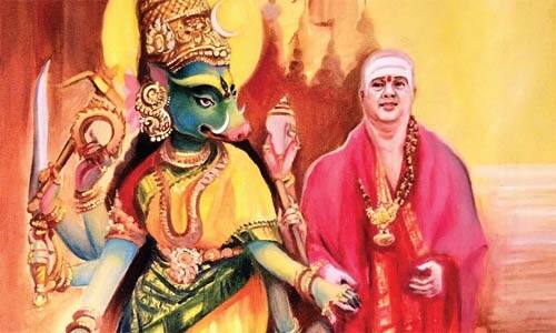 பரத்வாஜ் சுவாமியின் கையை பிடித்து செல்லும் வராஹி அம்பாள் ஓவியம்; பக்தர்கள் பரவசம்