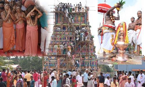 மயிலாடுதுறை மாவட்டம் சீர்காழி தாலுக்கா ஆச்சாள்புரம் கிராமத்தில் தருமபுரம் ஆதீனத்திற்கு சொந்தமான திருவென்னீற்றுமையம்மை சமேத சிவலோக தியாகராஜ சுவாமி கோவில் அமைந்துள்ளது. தேவார பாடல் பெற்ற இத்தலத்தில் சமயக்குறவர்களுள் ஒருவரான திருஞானசம்பந்த பெருமான் திருமண கோலத்தில் காட்சியளித்த ஸ்தலமாகவும், துணைவியாருடன் சிவசோதியில் கலந்து அருளிய சிறப்புமிக்க கோவிலாக திகழ்கிறது. இக்கோவில் 14 ஆண்டுகளுக்குப் பிறகு திருப்பணிகள் செய்து முடிக்கப்பட்டு இன்று கும்பாபிஷேகம் நடந்தது. கும்பாபிஷேகத்தை முன்னிட்டு கடந்த 16ஆம் தேதி பூர்வாங்க பூஜைகளும், 20ம் தேதி முதல் காலை யாகசாலை பூஜையும் தொடங்கி நடைபெற்றது. இன்று 6ம் கால யாகசாலை பூஜைகள் நிறைவடைந்து பூர்ணாஹுதி மற்றும் மகா தீபாராதனை நடைபெற்றது. தொடர்ந்து யாகசாலையில் இருந்து கடங்கள் புறப்பாடு செய்யப்பட்டு சிவ வாத்தியங்கள் மற்றும் மங்கள வாத்தியங்கள் முழங்க கோவிலை வலம் வந்து சுவாமி, அம்பாள் மற்றும் பரிவார மூர்த்திகளின் விமானங்களை அடைந்தது. அதனை அடுத்து தருமபுரம் ஆதீனம் 27 ஆவது குருமஹா சன்னிதானம் கயிலை மாசிலாமணி தேசிக ஞானசம்பந்த பரமாச்சாரியார் சுவாமிகள் முன்னிலையில் சிவாச்சாரியார்கள் விமான கலசங்களுக்கு புனித நீர் ஊற்றி கும்பாபிஷேகத்தை நடத்தி வைத்தனர். தொடர்ந்து சுவாமி, அம்பாளுக்கு அபிஷேக ஆராதனைகள் நடத்தப்பட்டன. கும்பாபிஷேகத்தில் செங்கோல் ஆதீனம் 103 வது குருமகாசன்னிதானம் ஸ்ரீலஸ்ரீ சிவப்பிரகாச தேசிக சத்திய ஞான சுவாமிகள், சூரியனார் கோயில் சிவாக்கிர யோகிகள் ஆதீனம் 28வது குரு மகாசன்னிதானம் ஸ்ரீலஸ்ரீ மகாலிங்க தேசிக பரமாசாரிய சுவாமிகள், தொண்டை மண்டல ஆதீனத்தின் 234-வது குருமகாசந்நிதானம் நாகராஜ் சுவாமிகள், நாச்சியார் கோவில் ஆதீனம், திருப்பனந்தாள் காசிமடத்து இளைய அதிபர் ஸ்ரீமத் சபாபதி தம்பிரான், தருமபுரம் ஆதீன கட்டளை தம்பிரான்கள், சென்னை மகாலட்சுமி உள்ளிட்ட திரளான பக்தர்கள் கலந்து கொண்டு தரிசனம் செய்தனர். மாலை திருக்கல்யாணம் நடைபெறுகிறது. போலீசார் உரிய பாதுகாப்பு ஏற்பாடுகளை செய்யாததால் கும்பாபிஷேகத்திற்கு கலந்து கொண்ட பக்தர்கள் ஆபத்தை உணராமல் சாரத்தின் வழியாக கோபுரத்தின் மீது ஏறி தரிசனம் செய்தது காண்போரை பதை பதைக்க செய்தது.