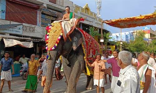 திருச்செந்தூர் முருகன் கோவிலில் ஆவணித்திருவிழா; கொடி பட்டத்துடன் வீதி உலா வந்த யானை
