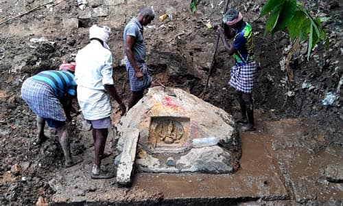 கல் மண்டபத்துடன் ஆற்றில் புதைந்த விநாயகர் சிலை மீட்பு; பக்தர்கள் வழிபாடு