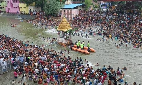 மயிலாடுதுறை; மயிலாடுதுறையில் ஐப்பசி மாத காவிரி துலா உற்சவத்தின் முக்கிய நிகழ்ச்சியான புகழ்பெற்ற கடைமுக தீர்த்தவாரி நிகழ்ச்சியை முன்னிட்டு மாயூரநாதர், ஸ்ரீவதான்யேஸ்வரர் உள்ளிட்ட பல்வேறு சிவாலயங்களில் இருந்து காவிரியின் இரண்டு பக்க கரைகளில் பஞ்சமூர்த்திகள் எழுந்தருளி நடைபெற்ற தீர்த்தவாரி உற்சவத்தில் திருவாவடுதுறை ஆதீனம், தருமபுர ஆதீனம் உள்ளிட்ட பல்லாயிரக்கணக்கான பக்தர்கள் புனித நீராடி வழிபாடு செய்தனர்.