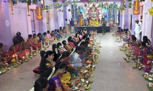 திருத்தணி; திருத்தணி பழைய தர்மராஜாகோவில் தெருவில் உள்ள திரவுபதியம்மன் கோவிலில், தீமிதி விழா நடந்து வருகிறது. நேற்று இரவு கோவில் வளாகத்தில், உற்சவர் அம்மன் சிறப்பு அலங்காரத்தில் எழுந்தருளினார். பின், 108 பெண்கள் பங்கேற்று, அம்மனுக்கு விளக்கு பூஜை நடத்தி வழிபட்டனர். தொடர்ந்து, உற்சவர் அம்மன் புஷ்ப பல்லக்கில் எழுந்தருளி, திருத்தணி நகரம் முழுதும் வீதியுலா வந்து பக்தர்களுக்கு அருள்பாலித்தார். வரும் 11ம் தேதி காலை துரியோதனன் படுகளம் மற்றும் மாலை தீமிதி விழா நடை பெறுகிறது.