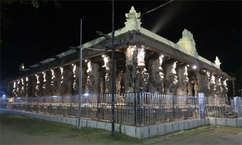 இரவு நேரத்தில் கோவிலுக்கு வரும் பக்தர்களின் வசதிக்காக, 100 கால் மண்டபம் இரவிலும் ஒளிரும் வகையில், கோவில் நிர்வாகம் சார்பில், அலங்கார மின்விளக்குகள் பொருத்தப்பட்டுள்ளன. இதனால், 100 கால் மண்டபம் இரவு நேரத்தில் மின்னொளியில் ஜொலிக்கிறது.