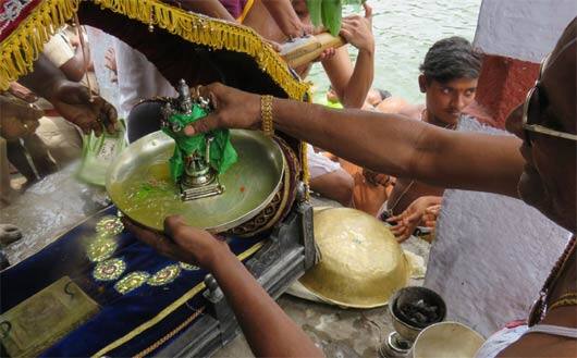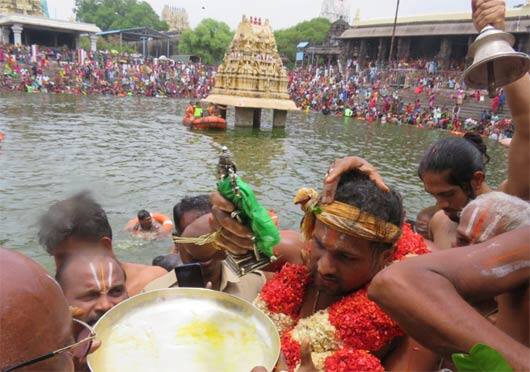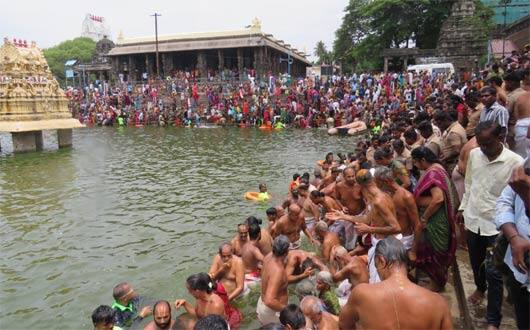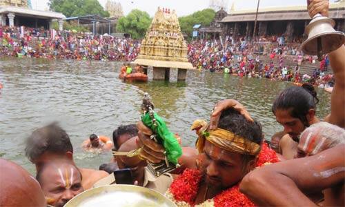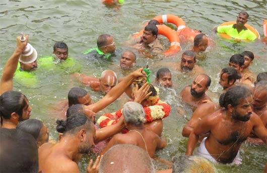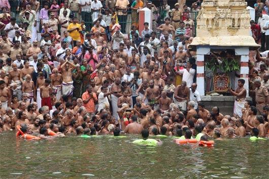 இதில், போலீசார் மற்றும் தீயணைப்பு வீரர்களின் கண்காணப்பில், பல ஆயிரக்கணக்கான பக்தர்கள் புனிதநீராடினர். பக்தர்களின் பாதுகாப்புக்காக கோவில் வளாகம், குளக்கரை மற்றும் குளத்திற்குள் என 300க்கும் மேற்பட்ட போலீசாரும், ஊர்காவல் படையினரும், தீயணைப்பு மீட்புபணி வீரர்களும் பாதுகாப்பு பணியில் ஈடுபட்டிருந்தனர். குளத்திற்குள் பொது மக்கள் இறங்காமல் தடுக்கும் வகையில் கயிறு கட்டப்பட்டிருந்தது. தீயணைப்பு மற்றும் போலீசார் சார்பில், மூன்று பைபர் படகுகள் பாதுகாப்புக்காக குளத்திற்குள் ரோந்து பணியில் ஈடுபட்டிருந்தன. பிரம்மோத்சத்தின், 10ம் நாள் உத்சவமான நாளை காலை, த்வாதச ஆராதனமும், இரவு வெட்டிபேர் சப்பரத்துடன் வைகாசி பிரம்மோத்சவம் நிறைவு பெறுகிறது.