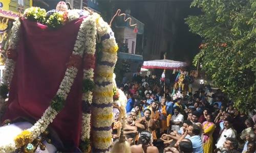 சென்னை; காலடிப்பேட்டை கல்யாண வரதராஜ பெருமாள் திருக்கோவிலில் குதிரை வாகனத்தில் எழுந்தருளிய உற்சவ பெருமான் நான்கு மாட வீதிகளில் வேடுபறி வைபவம் கோலாகலம் நடத்தப்பட்டது