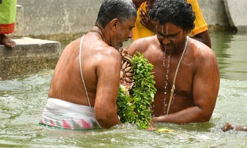 திருவொற்றியூர்; திருவொற்றியூர், காலடிப்பேட்டை, கல்யாண வரதராஜ பெருமாள் கோவில் பிரம்மோத்சவம், 11ம் தேதி கொடியேற்றத்துடன் துவங்கியது. தொடர்ந்து, உற்சவர் பவள வண்ண பெருமாள், அம்ச, சிம்மம், சூரிய பிரபை, நாகம், அனுமந்தம், யானை, குதிரை வாகனம், நாச்சியார் கோலத்தில் எழுந்தருளி, மாடவீதியில் உலா வந்தார். பிரதான நிகழ்வான கருடசேவை 13ம் தேதியும், திருத்தேர் உற்சவம் 17ம் தேதியும் நடந்தன. இதையடுத்து, இன்று காலை தீர்த்தவாரி உற்சவம் நடந்தது. முன்னதாக, சக்கரத்தாழ்வாருக்கு, பால், தயிர், பன்னீர், மஞ்சள் உள்ளிட்ட மங்கல பொருட்களால் அபிஷேகம் செய்யப்பட்டது. கோவில் உள் குளத்தில் தீர்த்தவாரி நடந்தது. அப்போது, கூடியிருந்த பக்தர்கள் ‘கோவிந்தா... கோவிந்தா’ என, விண்ணதிர முழங்கினர். மாலையில், அலங்கரிக்கப்பட்ட விமானத்தில் உற்சவர் பவள வண்ண பெருமாள், கோவில் கொடிமரம் அருகே எழுந்தருள கொடியிறக்கம் நடக்கிறது.
