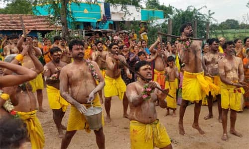 எழுமலை; எழுமலை அருகே எ.கோட்டைப்பட்டி கிராமத்தில் ராமலிங்க சவுண்டேஸ்வரி அம்மன் கோயில் வைகாசி மாத கரகமெடுப்பு பொங்கல் விழா நடைபெற்றது. திருவிழாவின் முக்கிய நிகழ்வான கரகம் எடுத்து சக்தி மாவு நிறுத்துதல் நிகழ்ச்சி இன்று காலை 8.00 மணியளவில் துவங்கியது. எ.கோட்டைப்பட்டி கோயிலில் இருந்து ஊர்வலமாக 2 கி.மீ., தூரத்தில் உள்ள உத்தப்புரம் கிராமத்தில் உள்ள முருகன் கோவிலில் சிறப்பு பூஜைகள் செய்து, கரகம் உருவேற்றி, சக்தி மாவு நிறுத்தினர். தொடர்ந்து, கரகத்தை கோயில் பூசாரி தலையில் சுமந்து கைகளால் தொடாமல், கோயிலுக்கு வரும் வழியில் துர் தேவதைகளை விரட்டும் வகையில் பக்தர்கள் கத்தி போட்டு அம்மன் கரகத்தை வழிநடத்தி வந்தனர் . ஓம் சக்தி, பராசக்தி, வா தாயே வா என்ற கோசங்களுடன் அம்மன் கரகத்தை அழைத்து வந்து கோவிலுக்கு கொண்டு வந்தனர். சவுண்டேஸ்வரி அம்மனுக்கு சிறப்பு வழிபாடுகள் நடத்தினர். இரவில் மாவிளக்கு, முளைப்பாரி, நாளை மே 28ல், பொங்கலிட்டு படையல் வைத்து வழிபாடு, மே 29 ல், கரகம் முளைப்பாரி கரைத்தல், இரவில் அம்மன் பூபல்லக்கில் நகர்வலம் வரும் நிகழ்ச்சிகள் நடைபெறும்.