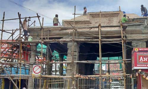 திருப்பரங்குன்றம்; திருப்பரங்குன்றம் 16கால் மண்டபத்தில் மராமத்துபணிகள் துவங்கியது. திருப்பரங்குன்றம் சுப்பிரமணிய சுவாமி கோயிலில் கும்பாபிஷேக பணிகள் நடக்கிறது. அதன் ஒரு பகுதியாக கோயில் முன்பு சன்னதி தெருவிலுள்ள 16கால் மண்டபத்தில் மராமத்து பணிகள் நேற்று முன்தினம் துவங்கியது. கல் தூண்கள் முழுவதும் வாட்டர் வாஷ் பணி முடிக்கப்பட்டு மேல் பகுதியில் ஒடுகள் பதிக்கும் பணியும், முகப்புகளில் அலங்காரப் பணிகளும் நடக்கிறது.