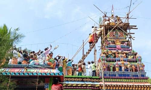 மானாமதுரை அருகே கீழமேல்குடி கிராமத்தில் உள்ள வழக்குடைய அய்யனார், சோனையா சுவாமி கோயிலில் கடந்த சில மாதங்களாக திருப்பணிகள் நடைபெற்று நிலையில் பணிகள் முடிவடைந்ததை தொடர்ந்து கடந்த மாதம் 20 ம் தேதி கும்பாபிஷேக விழாவிற்காக காப்பு கட்டி, முகூர்த்தகால் நடப்பட்டு, யாகசாலைகள் அமைக்கப்பட்டன. இதனை தொடர்ந்து கடந்த 2ம் தேதி கணபதி ஹோமத்துடன் யாகசாலை பூஜைகள் ஆரம்பமாகி விக்னேஸ்வர பூஜை, வாஸ்து சாந்தி, ரக்க்ஷா பந்தனம்,நாடி சந்தனம் உள்ளிட்ட 4 கால யாகசாலை பூஜைகள் நடைபெற்று இன்று காலை 9:00 மணிக்கு பூர்ணாகுதி முடிந்ததும் சிவாச்சாரியார் ராஜேஷ் தலைமையிலான சிவாச்சாரியார்கள் புனித நீர் அடங்கிய கடங்களை கோபுரத்திற்கு கொண்டு சென்று கலசங்களில் ஊற்றி கும்பாபிஷேகத்தை நடத்தி வைத்தனர்.பின்னர் வழக்குடைய அய்யனார், சோனையா சுவாமிகளுக்கும், பரிவார தெய்வங்களுக்கும் அபிஷேக, ஆராதனைகள்,பூஜைகள் நடைபெற்றது.கோயில் முன்பாக அன்னதானமும்,இரவு கலை நிகழ்ச்சிகளும் நடைபெற்றது. விழாவிற்கான ஏற்பாடுகளை கீழமேல்குடி கிராம மக்கள் மற்றும் கோயில் குடிமக்கள் செய்திருந்தனர்.