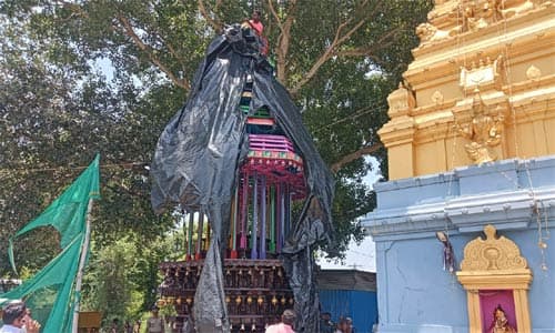 புத்தகரம் அம்மன் கோவிலின் தேரை எரிக்க மர்ம நபர்கள் முயற்சி; பக்தர்கள் கொதிப்பு