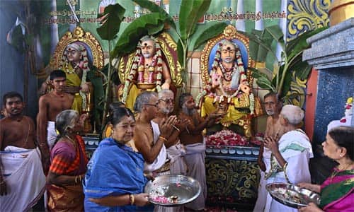 புதுச்சேரி - திண்டிவனம், மொரட்டாண்டி டோல்கேட் அருகே விஸ்வரூப மகா சனீஸ்வர பகவான் கோவில், தட்சணாமூர்த்தி 18 சித்தர் மகா மண்டபத்தில் நடந்த விழாவிற்கு, வச்சலா சிதம்பர குருக்கள் தலைமை தாங்கினார். வேத விற்பன்னர், பாடசாலை ஆசிரியர் கீதா சங்கர குருக்கள், கிருஷ்ணமூர்த்தி சாஸ்திரிகள் சிலையை திறந்து வைத்தார். பின், கீதாராம சாஸ்திரிகள், மொரட்டாண்டி பிரத்திங்கரா காளி கோவில் நிறுவனர் ஜனார்த்தன சுவாமிகள் ஆகியோர் தலைமையில் மருத்யுஞ்ஜய ஹோமம், ஆயுஷ்ய ஹோமம் நடந்தது. கீதாராம குருக்கள், சித்தார்த், தலைவர் சீனிவாசன், கல்யாணம், வேதராமன், நாகராஜன், சுவாமிநாதன், முரளி ராஜகோபால், ஆனந்த பத்மநாபன், சீத்தாராமன், ரகோத்தமன், ரவி ஆகியோர் கிருஷ்ணமூர்த்தி சாஸ்திரிகள் உருவ சிலைக்கு மலர் அஞ்சலி, புஷ்ப வழிபாடு நடத்தினர். தொடர்ந்து, சாம வேத பாராயணம், குரு ஆராதனை, பந்துமித்ர போஜனம் நடந்தது.