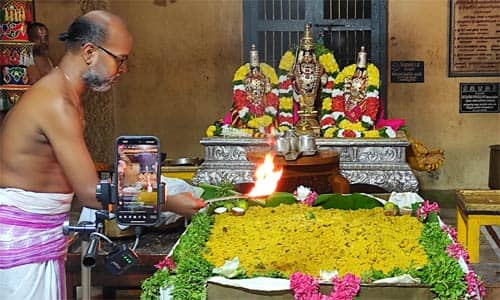 நடுநாட்டு திருப்பதி, 108 திவ்ய தேசங்களில் ஒன்றான திருக்கோவிலூர் உலகளந்த பெருமாள் கோவிலில், புரட்டாசி மாத முதல் சனிக் கிழமையை முன்னிட்டு இன்று அதிகாலை 4:00 மணிக்கு மூலவர் பெருமாள் விஸ்வரூப தரிசனம், 5:30 மணிக்கு நித்திய பூஜை, 7:00 மணிக்கு ஸ்ரீதேவி பூதேவி சமேத தேகளீச பெருமாள் மூலஸ்தானத்தில் இருந்து புறப்பாடாகி கண்ணாடி அறை மண்டபத்தில் எழுந்தருளினார். காலை 9:00 மணிக்கு சிறப்பு திருமஞ்சனம், 11:00 மணிக்கு சிகப்பு கல்கி கிரீடம், மரகத கண்டி, மரகத பச்சை பதக்கம், அட்டிகை அணிந்து திருக்கல்யாண வைபவம் நடந்தது. மதியம் 1:00 மணிக்கு கதம்ப சாதம், தயிர் சாதம், சர்க்கரை பொங்கல் படையலிடப்பட்டு வேத மந்திரங்கள் முழங்க திருப்பாவாடை தளிகையுடன் தீபாராதனை நடந்தது. தொடர்ந்து பக்தர்களுக்கு பிரசாதம் விநியோகிக்கப்பட்டது. மூலவர் உலகளந்த பெருமாள் கல்பதித்த சங்கு சக்கரம், கர்ண பத்திரம், காசு மாலை, மாங்காய் மாலை சாத்தப்பட்டு சிறப்பு அலங்காரத்துடன் பக்தர்களுக்கு அருள் பாலித்தார். மாலை 6:00 மணிக்கு ஸ்ரீதேவி பூதேவி சமேத தேகளீச பெருமாள் சன்னதி வீதி புறப்பாடு, கண்ணாடி அறையில் ஊஞ்சல் சேவை, இரவு 9:00 மணிக்கு சுவாமி மூலஸ்தானம் எழுந்தள்ளினார். ஜீயர் ஸ்ரீ தேகளீச ராமானுஜாச்சாரியார் சுவாமிகள் உத்தரவின் பேரில், கோவில் ஏஜென்ட் கோலாகளன் விழாவிற்கான ஏற்பாடுகளை செய்திருந்தார். திரளான பக்தர்கள் நீண்ட வரிசையில், வெகு நேரம் காத்திருந்து சுவாமி தரிசனம் செய்தனர்.