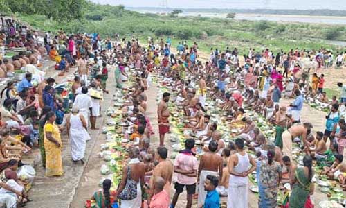பேரூர் நொய்யல் படித்துறையில் மகாளய அமாவாசை வழிபாடு அக் 4 நடந்தது. இதில், திரளான பக்தர்கள் கலந்து கொண்டு திதி கொடுத்தனர். இறந்துபோன மூதாதையர்களை நினைத்து காய்கறிகள், அரிசி, எள், பழம், சமையல் பொருட்களை வைத்து திதி கொடுத்து தர்ப்பண வழிபாடு நடத்தினர்.