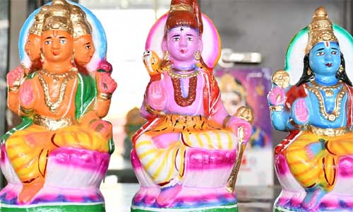 திருப்பூர்: வீடுகள் மற்றும் கோவில்களில், கொலு மேடையில் வண்ணமயமான பொம்மைகள் மற்றும் தெய்வ சிலைகளையும் வைத்து, ஒன்பது நாட்கள் கொண்டாடப்படும் நவராத்திரி வழிபாடு நாளை துவங்குகிறது. தமிழகத்தை பொறுத்தவரை, நவராத்திரி விழாவில், கொலு பொம்மைகளுடன் மும்மூர்த்திகளையும், லட்சுமி, சரஸ்வதி, பார்வதி ஆகிய முப்பெரும் தேவியரையும் வழிபடுவது வழக்கம். படிகள் மேல்நோக்கி செல்வது போல், மனிதர்களின் வாழ்க்கையிலும் முன்னேற்றம் இருக்க வேண்டும் என்ற பிரார்த்தனையுடன், 5, 7 அல்லது 9 படிகளுடன் கொலு அமைக்கப்படுகிறது. முதல்படியில் இருந்து, ஆறாவதுபடி வரையில், ஓரறிவு தாவரங்கள் துவங்கி, ஆறறிவு பெற்ற மனிதர்கள் பொம்மைகள் வரை அடுக்கி வைக்க வேண்டும். ஏழாவது படியில், முனிவர்கள், தேவாதிதேவர்கள், மகான்கள் பொம்மைகளை வைக்கலாம். எட்டாவது படியில், இந்திரன், குபேரன், நவகிரஹங்களை வைக்கலாம். ஒன்பதாவது படியில், பிரம்மா, விஷ்ணு, சிவன் ஆகிய மும்மூர்த்திகள் சிலைகளையும், முப்பெரும் தேவியர் சிலைகளையும் வைக்கலாம். ஆண்டுக்கு ஆண்டு, கொலு வளர்ச்சி அடைவது போல், குடும்பமும் வளரும் என்பது, பக்தர்களின் நம்பிக்கை. செடி, கொடி, தாவரம், மரம்; கடல் வாழ் உயிரினங்கள், ஊர்வன, கிளி, கழுகு உள்ளிட்ட பறக்கும் பறவைகள், நான்குகால் விலங்குகள், மனிதர்கள், ஹிந்து பாரம்பரிய குடும்ப விழாக்கள், காதணி விழா, திருமணம், பூப்பு நன்னீராட்டு விழா, குழந்தைக்கு பெயர் சூட்டும்விழா, அரசர்கள் நடத்திய தர்பார் மண்டபம், மாட்டுவண்டி என, ஏராளமான பொம்மைகள், புதிய வடிவங்களில் விற்பனைக்கு வந்துள்ளது. நாளை முதல், கோவில் மற்றும் வீடுகளில் கொலு வழிபாடு துவங்கும். வரும், அக். 1ம் தேதி சரஸ்வதி பூஜை, ஆயுதபூஜையும், 2ம் தேதி விஜயதசமி விழாவும் கொண்டாடப்பட உள்ளது. முதல் நாளில், மகேஸ்வரி, 2வது நாளில் ராஜ ராஜேஸ்வரி, 3வது நாளில் வராகி, 4வது நாளில் மகாலட்சுமி, 5வது நாளில் மோகினி, 6வது நாளில் சண்டிகா தேவி, 7வது நாளில் சாம்பவி துர்க்கை, 8வது நாளில், நரசிம்ம தாரிணி, 9வது நாளில் பரமேஸ்வரியையும், 10வது நாளாகிய விஜயதசமி நாளில், பார்வதியின் ஸ்துால வடிவமாகிய விஜயாவை இனிப்பு பதார்த்தங்கள், பாயசம் படைத்து வழிபடலாம் என, சிவாச்சாரியார்கள் கூறுகின்றனர்.