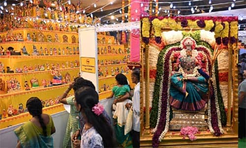 சென்னை; வடபழனி முருகன் கோவிலில், நவராத்திரி விழா துவங்கியது. வடபழனி முருகன் கோவிலில் ஆண்டுதோறும் நவராத்திரி விழா, கோலாகலமாக கொண்டாடப்பட்டு வருகிறது. அந்தவகையில் இந்தாண்டு விழா, நேற்று துவங்கியது. வரும் 1ம் தேதி வரை நடக்கும் விழாவில், ‘சக்தி கொலு’ எனும் பெயரில் பிரமாண்ட கொலு அமைக்கப்பட்டுள்ளது. பெண் பக்தர்கள் ஒருங்கிணைந்து, குத்துவிளக்கேற்றி நேற்று விழாவை துவக்கி வைத்தனர். மேலும், காலை, மாலை வேளைகளில், அம்மன் கொலு மண்டபத்தில், சிறப்பு பூஜை, தீபாராதனை நடக்கிறது. விழாவின் முதல் நாளான நேற்று, அம்பாள் ராஜராஜேஸ்வரி அலங்காரத்தில் பக்தர்களுக்கு அருள்பாலித்தார். இதில், ஏராளமான பக்தர்கள் பங்கேற்று, கொலுவை ரசித்தனர். பின், பக்தர்களுக்கு ஆன்மிக வினாடி – வினா நடத்தப்பட்டு பரிசுகள் வழங்கப்பட்டன. கொலுவை ரசித்த சிறுவர் – சிறுமியருக்கு சிறப்பு பரிசாக மரக்கன்றுகள் வழங்கப்பட்டன. நேற்று மாலை 5:00 மணி முதல் 7:00 மணி வரை லலிதா சகஸ்ரநாம பாராயணம், வேதபாராயணம், திருமுறை பாராயணம், மகளிர் குழுவினர் கொலுபாட்டு நடத்தப் பட்டது. அதைத்தொடர்ந்து நிருத்யர்பணம் நடனப்பள்ளி மாணவியரின் பரத நாட்டிய நிகழ்ச்சியும், அதைத்தொடர்ந்து கணேசின் நாமசங்கீர்த்தன நிகழ்ச்சியும் நடந்தது. வடபழனி முருகன் கோவில் கொலுவை காலை 6:30 மணி முதல் மதியம் 12:30 மணி வரையும், மாலை 4:30 மணி முதல் இரவு 9:30 மணிவரையும் கண்டு களிக்கலாம். மாபெரும் கொலு கண்காட்சி அதேபோல, அறநிலையத்துறை கட்டுப்பாட்டில் உள்ள கோவில்கள் சார்பில் மயிலாப்பூர் கபாலீஸ்வரர் திருமண மண்டபத்தில் மாபெரும் கொலு மற்றும் கலை நிகழ்ச்சிகளுடன் நவராத்திரி பெருவிழா நேற்று துவங்கியது. நவராத்திரி விழாவை அமைச்சர் சேகர்பாபு குத்துவிளக்கேற்றி துவக்கி வைத்தார். கவர்னர் மாளிகையை அலங்கரிக்கும் ‘கொலு; நவராத்திரியை முன்னிட்டு, ஒவ்வொரு ஆண்டும் கவர்னர் மாளிகையில் கொலு அமைக்கப்பட்டு வருகிறது. அந்த வகையில் நேற்று, கவர்னர் மாளிகையில் நவராத்திரி கொலு விழா துவங்கியது. கவர்னர் ரவி துவக்கி வைத்து கொலுவை பார்வையிட்டார். வரும் 1ம் தேதி வரை நடக்கும் விழாவில், தினமும் மாலை 4:00 மணி முதல் 5:00 மணி வரை வழிபாடு மற்றும் கலாசார நிகழ்ச்சிகள் நடக்கிறது. ‘ஆன்லைன்’ மூலம் ஏற்கனவே பதிவு செய்த நபர்கள் மட்டுமே, கொலுவை கண்டுகளிக்க அனுமதிக்கப்படுவர் என, கவர்னர் மாளிகை நிர்வாக அதிகாரிகள் தெரிவித்தனர்.