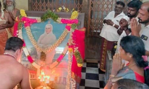 திருத்தணி; திருத்தணி முருகன் கோவில் நிர்வாகம் சார்பில், ராமலிங்க அடிகளார் பிறந்த நாளையொட்டி, அவரது உருவப்படம் ஊர்வலமாக எடுத்து வரப்பட்டது. திருத்தணி முருகன் கோவில் சார்பில், ராமலிங்க அடிகளார் பிறந்தநாள் விழா நேற்று நடந்தது. இதையொட்டி, முருகன் கோவிலின் உபகோவிலான சுந்தர விநாகயர் கோவில் வளாகத்தில், இணை ஆணையர் ரமணி முன்னிலையில், ராமலிங்க அடிகளாரின் உருவப்படத்திற்கு சிறப்பு அலங்காரம் மற்றும் தீபாராதனை நடந்தது. தொடர்ந்து, உருவப்படத்தை கோவில் ஊழியர்கள், முக்கிய சாலை வழியாக சென்று, மலைக்கோவிலுக்கு கொண்டு சென்றனர். பின், மலைக்கோவிலில் உள்ள காவடி மண்டபத்தில் உருவப்படத்திற்கு மீண்டும் சிறப்பு பூஜைகள் நடந்தன.