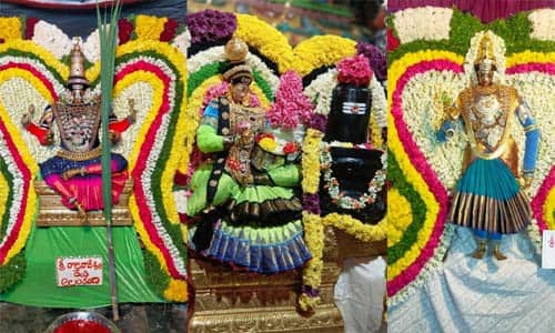 ஸ்ரீ காளஹஸ்தி சிவன் கோயில் துணை கோயிலான முத்தியாலம்மன் மகாசன்டி தேவி அலங்காரத்தில் பக்தர்களுக்கு காட்சியளித்தார். இதே போல் பஜார் தெருவில் உள்ள ஸ்ரீ வாசவி கன்னிகா பரமேஸ்வரி கோவிலில், மதுரை கல் அழகர் பெருமாள் அலங்காரத்தில் பக்தர்களுக்கு காட்சி அளித்தார், ஏழு கங்கை அம்மன் கோயிலில் உள்ள அம்மன் காள ராத்திரி தேவி அலங்காரத்தில் பக்தர்களுக்கு அருள் பாலித்தார். ஸ்ரீ காளஹஸ்தி அடுத்துள்ள வேடாம் கிராமத்தில் உள்ள தட்சிணா காளியம்மன் மகா சண்டி தேவி அலங்காரத்திலும், பானகல் பொன்னாலம்மனும் மீனாட்சி அம்மன் அலங்காரத்திலும் அருள் பாலித்தனர். ஸ்ரீகாளஹஸ்தி நகரின் எல்லைப் பகுதியில் உள்ள பகதூர் பேட்டை தெட்டுப் பகுதியில் வீற்றிருக்கும் கருப்பு கங்கை அம்மன் ராஜ் ராஜேஸ்வரி தேவி அலங்காரத்தில் பக்தர்களுக்கு அருள் பாலித்தார். அனைத்து அம்மன் கோயில்களிலும் நவராத்திரி விழாவின் ஏழாம் நாள் என்பதால் அம்மன் கோயில்களில் காலை முதல் மாலை வரை சிறப்பு அபிஷேக ஆராதனைகள் நடைபெற்றன. இதில் ஏராளமான பக்தர்கள் கலந்து கொண்டு அம்மனை தரிசனம் செய்தனர்.