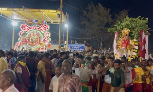 தூத்துக்குடி; குலசேகரன்பட்டினம் முத்தாராம்மன் கோவிலில் தசரா திருவிழாவின் சிகர நிகழ்வான சூரசம்ஹாரம் நள்ளிரவு 12 மணிக்கு நடைபெற்றது. இதில் லட்சக்கணக்கான பக்தர்கள் கலந்து கொண்டு தரிசனம் செய்தனர்.