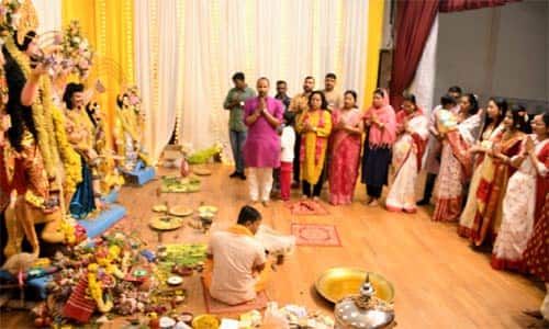 குன்னுார் அருகே அருவங்காடு வெடிமருந்து தொழிற்சாலையில் ஆண்டுதோறும், ‘நீலகிரி சர்போஜனின் துர்கா சப்‘ அமைப்பு சார்பில், நவராத்திரி விழா கொண்டாடப்பட்டு வருகிறது. 64-வது ஆண்டு நவராத்திரி துர்கா பூஜை விழா, மகா சாஸ்தி பூஜையுடன் கடந்த, 28 ல் துவங்கியது. தினமும் மகா சப்தமி பூஜை, புஷ்பாஞ்சலி, ஆரத்தி, அன்னதானம், சந்தியா ஆரத்தி, இன்னிசை நிகழ்ச்சி, பஜனை உட்பட கலாசார நிகழ்ச்சிகள் நடந்தன. நேற்று ‘பிரபஞ்சம் அனைத்தும் அம்மனின் காலடியில் அடக்கம் என்பதை குறிக்கும் வகையில், அம்மனின் கால் பாதத்தை கண்ணாடியில் பார்த்து பக்தர்கள் வழிபடுதல், சுமங்கலி பூஜை, அம்மனுக்கு செந்துாரம் திலகமிடும் குங்கும் வழிபாடு,’ உட்பட பல்வேறு பூஜைகள் நடந்தன. சுமங்கலி பூஜையை மகளிர் நடத்தி வழிபட்டனர். மகளிரும் நெற்றியில் செந்துாரம் இட்டு வழிபட்டனர். மேலும், குழந்தைகளுக்கு எழுத்தறிவு கொடுக்கும் வித்யாரம்பம் நிகழ்ச்சியும் நடந்தது. தொடர்ந்து, வழிபாட்டுக்கு வைக்கப்பட்ட சிலைகள் ஊர்வலமாக எடுத்து சென்று, காட்டேரி அணையில் கரைக்கப்பட்டது. பூஜை நிகழ்ச்சிகளில், மாவட்ட கலெக்டர் லட்சுமி பவ்யா, கார்டைட் தொழிற்சாலை முதன்மை பொது மேலாளர் விகாஸ் பூர்வார், உதவி பொது மேலாளர் ராஜிவ் பங்கேற்றனர். விழா ஏற்பாடுகளை, நீலகிரி சர்போஜனின் துர்கா சப் அமைப்பு செயலாளர் சதான் குமார் கோஷ், ஒருங்கிணைப்பாளர் சின்கா, இணை செயலாளர் சங்கர் தாஸ், பொருளாளர் சாந்தனு மற்றும் பெங்காளி இன மக்கள் செய்திருந்தனர்.