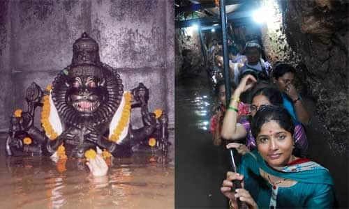 இப்படிப்பட்ட நரசிம்மரை நீரில் நடந்தவாறே சென்று தரிசிக்கலாம். தரிசனம் செய்யும் இடத்தில் 10 பேர் மட்டும் நிற்கக்கூடிய அளவில் உள்ளது. இவர்கள் தரிசனம் செய்த பின்னரே, மற்றவர்கள் தரிசனம் செய்ய முடியும். மூலவரை தரிசித்த பிறகு, அருகில் இருக்கும் சிவ லிங்கத்தையும் வழிபடலாம். இந்த சிவ லிங்கமே அரக்கன் ஜலகாசூரன் வழிபட்ட சிவ லிங்கம் என நம்பப்படுகிறது.