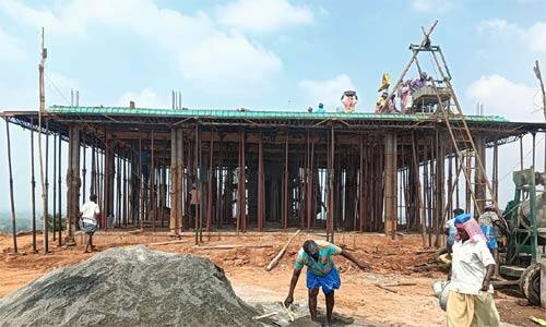 பழவேரி; பழவேரி மலை மீது முருகன் கோவில் கட்டுமானப் பணி நடக்கிறது.