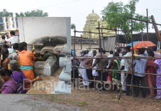 ஏமாற்றத்தில் ஏழைகள்.. வி.ஐ.பி.,க்களுக்கு கரிசனம் : நேற்று ரூ.100 டிக்கெட் எடுத்து தரிசனம் செய்பவர்களுக்கு மட்டும் சந்தனம் வழங்கப்பட்டதால், ஏழை, எளிய பக்தர்கள், சந்தனம் கிடைக்காமல் ஏமாற்றம் அடைந்தனர். இதனால் நடராஜருக்கு அபிஷேகம் செய்து வெளியான சந்தனத்தை, முண்டியடித்து பாட்டில்களில் பிடித்துச் சென்றனர். சுவாமி தரிசனத்திற்கு, டிக்கெட் வாங்க வரிசையில் நிற்பவர்களுக்கு, பந்தல் வசதி செய்யப்படவில்லை. நேற்று மழை தொடர்ந்து பெய்ததால், கைக்குழந்தைகளோடு வந்தவர்கள் மழையில் நீண்டநேரம் நனைந்தபடி நின்றிருந்தனர். இலவச தரிசனம், மற்றும் ரூ.10 தரிசனத்திற்கு நின்ற கூட்டத்தை விட, ரூ.100 கட்டணத்திற்கான பிரிவில், பக்தர்கள் அதிகளவில் இருந்தனர். நடராஜர் சன்னதியில் பக்தர்கள் வெளிவரும் வாசல் வழியாக அதிகாரிகள், அவர்களின் குடும்பத்தினர் உட்பட வி.ஐ.பி.,க்கள் தரிசனம் செய்ய அனுமதிக்கப்பட்டனர். இதனால், சாதாரண பக்தர்கள் காக்க வைக்கப்பட்டனர்.