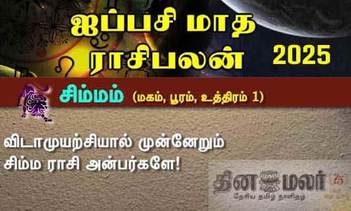 பூரம்; எப்போதும் முதலிடத்தில் இருந்து வரும் உங்களுக்கு, ஐப்பசி யோகமான மாதமாகும். உங்கள் பாக்கியாதிபதி சுக்கிரன் மாதம் முழுவதும் சாதகமாக சஞ்சரிப்பதால் பொன், பொருள் சேர்க்கை உண்டாகும். குடும்பத்தில் இருந்த நெருக்கடி விலகும். பொருளாதார நிலை உயரும். கணவன், மனைவிக்குள் ஏற்பட்ட சச்சரவு விலகி இணக்கம் உண்டாகும். வியாபாரம், தொழில் முன்னேற்றம் அடையும். அரசியல்வாதிகளின் செல்வாக்கு உயரும். கடந்த கால நெருக்கடி விலகும். சிலர் புதிய வாகனம் வாங்குவர். வராமல் இருந்த பணம் வரும். பூமிக்காரகன் செவ்வாய் அக்.27 வரை முயற்சி ஸ்தானத்தில் சஞ்சரிப்பதால் எடுக்கும் வேலைகளில் வெற்றி கிடைக்கும். தைரியமும், தன்னம்பிக்கையும் அதிகரிக்கும். நினைத்ததை நடத்தி முடிப்பீர்கள். அரசு பணியில் இருந்த நெருக்கடி நீங்கும். சகோதரர்களின் ஒத்துழைப்பு கிடைக்கும். ஐப்பசி அதிர்ஷ்டமான மாதமாக இருக்கும். விரய ஸ்தானத்தில் சஞ்சரிக்கும் குரு 4, 6, 8 ம் இடங்களைப் பார்ப்பதால், மனதில் நிம்மதி உண்டாகும். தாய்வழி உறவுகளின் ஆதரவு கிடைக்கும். உடல் பாதிப்பு விலகும். திடீர் அதிர்ஷ்ட வாய்ப்புகள் தேடி வரும். சந்தர்ப்ப சூழலால் அமைதியாக இருந்த நிலை மாறும். ராசிநாதனும் மூன்றாம் இடத்தில் சஞ்சரிப்பதால் நினைப்பது நடந்தேறும். பயம் மறையும். துணிச்சலாக செயல்பட்டு நினைத்ததை சாதிப்பீர்கள். பணியாளர்களுக்கு எதிர்பார்த்த இடமாற்றம், பதவி உயர்வு கிடைக்கும். வியாபாரம் தொடங்க அனுமதி கிடைக்கும். ராசிக்குள் கேது சஞ்சரிப்பதால் ஒவ்வொரு வேலையிலும் கவனமுடன் செயல்படுவது நல்லது.