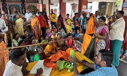 மடப்புரம் கோயிலில் சேலை ஏலம், போட்டி போட்டு எடுத்த பெண்கள்