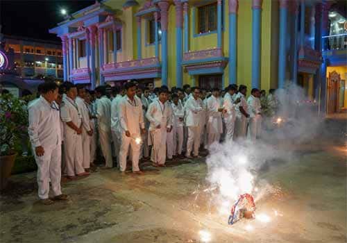 இந்த ஆண்டு தீபாவளி கொண்டாட்டங்கள் ஒரு சிறப்பு முக்கியத்துவத்தைக் கொண்டிருந்தன. முதன்முறையாக, அனந்தபூர் வளாகத்தில் உள்ள ஸ்ரீ சத்ய சாய் உயர் கல்வி நிறுவனத்தின் முன்னாள் மாணவர்களும் மாணவர்களும், ஒரு லட்சத்திற்கும் மேற்பட்ட சுற்றுச்சூழலுக்கு உகந்த மண் விளக்குகளால் முழு ஆசிரமத்தையும் ஒளிரச் செய்தனர், ஒவ்வொன்றும் ஒரு மாத காலத்தில் கையால் வடிவமைக்கப்பட்டன. பக்தியின் கலங்கரை விளக்கம் மற்றும் சுவாமியின் அன்பு மற்றும் சேவையின் செய்திக்கு அசைக்க முடியாத அர்ப்பணிப்பின் சின்னமா இவை விளங்கின. பகவானால் தொடங்கப்பட்ட ஒரு புகழ்பெற்ற பாரம்பரியத்தைத் தொடர்ந்து, சுவாமியின் கல்வி நிறுவனங்களைச் சேர்ந்த மாணவர்கள் யஜுர் மந்திரம் அருகே மகிழ்ச்சியுடன் கூடி, பட்டாசுகளை கொளுத்தி கொண்டாடினர். துடிப்பான ஒலிகளும், பிரகாசமான ஒளி வெடிப்புகளும், பகவான் இந்த பண்டிகைச் செயலில் நேரில் பங்கேற்று ஆசீர்வதித்த ஆரம்ப ஆண்டுகளின் மகிழ்ச்சியை எதிரொலித்தன. இந்த அழகான பாரம்பரியம் ஒரு நினைவாக மட்டுமல்ல, அவரது இருப்பு மற்றும் அன்பின் உயிருள்ள கொண்டாட்டமாகவும் வாழ்கிறது.