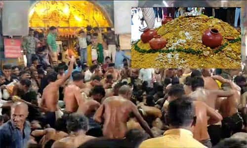 குஜராத், குஜராத்தில் உள்ள டகோர் கோவிலில் அன்னகூட திருவிழாவில் பல நூற்றாண்டுகள் பழமையான பாரம்பரியத்தில் 3,000 கிலோவுக்கும் அதிகமான பிரசாதம் பக்தர்களால் எடுத்து செல்லப்பட்டது.