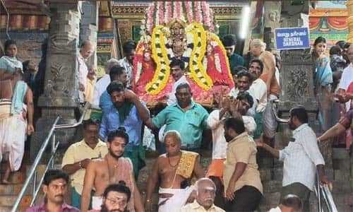 சுவாமிமலை முருகன் கோவிலில் கந்த சஷ்டி விழா துவக்கம்; மலையில் இருந்து படி இறங்கி வந்த சுவாமி
