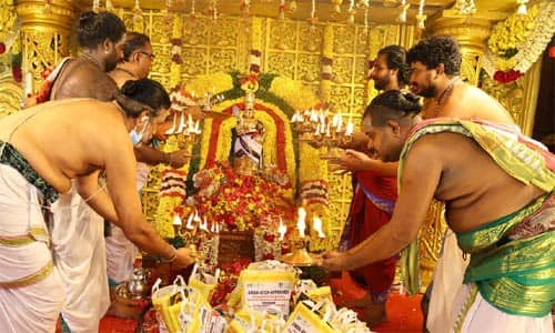 வடபழனி முருகன் கோவிலில், இந்த ஆண்டு கந்த சஷ்டி விழா நேற்று முன்தினம் துவங்கியது. நேற்று காலை 9:00 மணிக்கு, மகா கந்தசஷ்டி லட்சார்ச்சனை துவங்கியது. இரவு மங்களகிரி விமானத்தில் பாலசுப்பிரமணிய சுவாமி புறப்பாடு நடந்தது. இதில், ஏராளமான பக்தர்கள் பங்கேற்றனர். இன்று முதல் வரும் 26ம் தேதி வரை, காலை 7:00 மணிக்கு லட்சார்ச்சனை துவங்குகிறது. ஒவ்வொரு நாளும் இரவும் முறையோ சந்திரபிரபை, ஆட்டுக்கிடா, நாக வாகனம், மங்களகிரி விமானத்தில் பாலசுப்பிரமணியர் அருள்பாலிக்கிறார். வரும், 27ம் தேதி காலை 6:00 மணிக்கு, மகா கந்தசஷ்டி லட்சார்ச்சனை துவங்கி, உச்சி காலத்துடன் பூர்த்தியாகிறது. அதை தொடர்ந்து, தீர்த்தவாரி, கலசாபிஷேகம் நடக்கிறது. இரவு, 8:00 மணிக்கு சூரசம்ஹார உத்சவம் நடக்கிறது. பின், தெய்வானை சமேத சண்முகப் பெருமான் மயில் வாகனத்தில் புறப்பாடு நடக்கிறது. வரும், 28ம் தேதி இரவு 7:00 மணிக்கு வள்ளி, தெய்வானை சமேத சுப்பிரமணியர் திருக்கல்யாணம், மயில் வாகன புறப்பாடு நடக்கிறது. திருக்கல்யாண விருந்து இரவு 8:00 மணிக்கு நடக்கிறது. வரும் 29ம் தேதி முதல் நவ., 1 வரை இரவு சுவாமி புறப்பாடு நடக்கிறது.