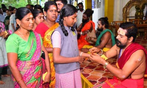 அலகுமலை முத்துக்குமார சுவாமி கோவிலில் கங்கணம் அணிந்து விரதம் துவக்கிய பக்தர்கள்