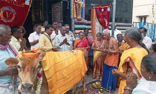 சின்னசேலம்: சின்னசேலம் கன்னிகா பரமேஸ்வரி அம்மன் கோவில் ஐப்பசி மாத முதல் வெள்ளியை முன்னிட்டு கோ பூஜை நடந்தது. அதனையொட்டி, நேற்று காலை 7:30 மணிக்கு அலங்கரிக்கப்பட்ட கோமாதாவிற்கு மாலைகள் சார்த்தி, பட்டாடை போர்த்தி மகா தீபாராதனை நடந்தது. பூஜைகளை கோவில் அர்ச்சகர் முரளி சர்மா செய்திருந்தார். முன்னதாக மூலவருக்கும் சிறப்பு பூஜை நடந்தது. வாசவி வனிதா சங்க தலைவர் வேலுமணி, மகிளா விபாக் உட்பட பலர் பங்கேற்றனர்.