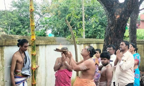 திருவாலங்காடு சாட்சிபூதேஸ்வரர் கோவிலில் பந்தக்கால் நடப்பட்டது