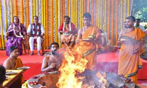 இந்நிகழ்ச்சிக்கு ஸ்ரீபுரம் சக்தி அம்மா தலைமை வகித்தார். சிறப்பு விருந்தினராக மத்திய வேளாண் துறை அமைச்சர் சிவராஜ் சிங் சவுகான் பங்கேற்றார். ஸ்ரீபுரம் பொற்கோவிலில் நாராயணி அம்மனை தரிசித்த சிவராஜ் சிங் சவுகான், அவரது மனைவி சாதனா சிங் ஆகியோர் கோவிலை சுற்றி பார்த்தனர். பின்னர், கோவில் வளாகத்தில் நடந்த மகா சண்டி யாகம் பூர்ணாஹுதியில் பங்கேற்றனர். குருஸ்தானம் பூஜை மண்டபத்தை திறந்து வைத்து, அமைச்சர் மரக்கன்றுகளை நட்டார்.