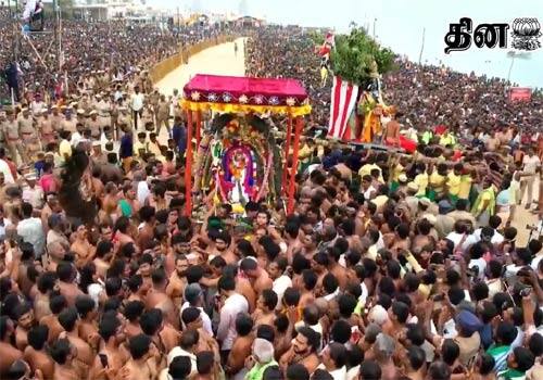 தூத்துக்குடி: வெற்றிவேல் முருகனுக்கு அரோகரா என்ற லட்சக்கணக்காக பக்தர்களின் கோஷம் விண்ணதிர, திருச்செந்தூர் கோயில் கடற்கரையில் ஆணவம் கொண்டு போரிட்ட சூரனை, சுவாமி ஜெயந்திநாதர் சம்ஹாரம் செய்தார்.