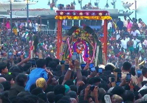முருகனின் அறுபடை வீடுகளில் இரண்டாம் படை வீடான திருச்செந்தூர் சுப்பிரமணிய சுவாமி கோவிலில் கந்த சஷ்டி திருவிழா கடந்த 22ஆம் தேதி யாகசாலையுடன் தொடங்கியது. விழாவின் சிகர நாளான இன்று மாலை சூரசம்ஹாரம் நடைபெற்றது. இதையொட்டி இன்று அதிகாலை ஒரு மணிக்கு கோவில் நடை திறக்கப்பட்டு சுவாமிக்கு விஸ்வரூப தீபாராதனை, உதயமார்த்தாண்ட அபிஷேகம் நடைபெற்றது. தொடர்ந்து யாகசாலையில் பூஜை ஆரம்பமாகியது. மதியம் 12 மணி அளவில் யாகசாலையில் தீபாராதனையும் 12 45 மணிக்கு மேல் சப்பரத்தில் சுவாமி ஜெயந்தீநாதர் யாகசாலையில் இருந்து எழுந்தருளி வேல்வகுப்பு வீரவால் வகுப்பு முதலிய பாடல்களுடன் மேள வாக்கியங்களுடன் சண்முக விலாசம் மண்டபம் வந்து சேர்ந்தார். அங்கு தீபாராதனை நடைபெற்றது. தொடர்ந்து மதியம் 2 மணிக்கு மேல் திருவாவடுதுறை ஆதின சஷ்டி மண்டபத்தில் சுவாமி ஜெயந்தி ஆவதற்கு அபிஷேக அலங்காரம் நடந்தது. பின்னர் மாலை 4:30 மணிக்கு சுவாமி ஜெயந்திநாதர் சூரசம்காரத்திற்கு எழுந்தருளினார், கஜமுகன், சிங்கமுகன், சூரபத்மனாய் அடுத்தடுத்து வலம் வந்து ஆணவத்துடன் போரிட்ட சூரனை, சுவாமி ஜெயந்திநாதர் தன்னுடையே வேலால் சம்ஹாரம் செய்தார். அப்போது, அங்கு கூடியிருந்த பக்தர்கள், "வெற்றிவேல் முருகனுக்கு அரோகரா என கோஷமெழுப்பினர். சூரபத்மனை சுவாமி தன்னுடைய சேவற்கொடியாகவும், மாமரமாகவும் ஆட்கொண்டார். சம்ஹாரம் முடிந்ததும், சுவாமி ஜெயந்திநாதர், வள்ளி-தெய்வானை அம்பாள்களுக்கு, சந்தோஷ மண்டபத்தில் அபிஷேகம், தீபாராதனை நடந்தது. சூரபத்மனை வதம் செய்யும் சூரசம்ஹாரம் நடைபெற்றது. இதில் லட்சக்கணக்கான பக்தர்கள் கலந்து கொண்டு தரிசனம் செய்தனர்.