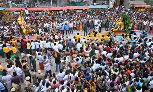 முருகனின் ஏழாம் படைவீடாக மருதமலை சுப்பிரமணியசுவாமி கோவில் கருதப்படுகிறது. இக்கோயிலுக்கு, பல்வேறு பகுதிகளிலிருந்தும் நாள்தோறும் ஆயிரக்கணக்கான பக்தர்கள் வந்து செல்கின்றனர். இக்கோவிலில் இந்தாண்டு கந்த சஷ்டி விழா, கடந்த 22ம் தேதி, காப்பு கட்டுதலுடன் துவங்கியது. நாள்தோறும் யாகசாலை பூஜை, அபிஷேக பூஜை, திருவீதி உலா நடந்தது. கந்த சஷ்டி விழாவின் முக்கிய நிகழ்வான, சூரசம்ஹார நிகழ்ச்சி இன்று மாலை, 3:00 மணிக்கு நடைபெற்றது. ஏராளமான பக்தர்கள் குவிந்தவர். பரவசத்துடன் முருகனை தரிசனம் செய்தனர். போக்குவரத்து நெரிசலை தவிர்க்க, இன்றும், நாளையும் அடிவாரத்தில் இருந்து மலைமேல் செல்ல, இருசக்கர மற்றும் நான்கு சக்கர வாகனங்களுக்கு அனுமதியில்லை. இன்று, சட்டக்கல்லூரி அருகே அமைக்கப்பட்டுள்ள பார்க்கிங் பகுதியில், பக்தர்கள் தங்களின் இருசக்கர வாகனங்கள் மற்றும் நான்கு சக்கர வாகனங்களை நிறுத்திவிட்டு, கோவில் பஸ் வாயிலாகவும், படிக்கட்டு பாதை வாயிலாகவும், மலைமேல் உள்ள கோவிலுக்கு செல்ல வேண்டும். இன்று, 200க்கு மேற்பட்ட போலீசார் பாதுகாப்பு பணியில் ஈடுபட உள்ளனர். பக்தர்களுக்கு தேவையான குடிநீர், பார்க்கிங், பஸ், மருத்துவ வசதிகளை கோவில் நிர்வாகம் மற்றும் மாவட்ட நிர்வாகம் இணைந்து மேற்கொண்டுள்ளன.