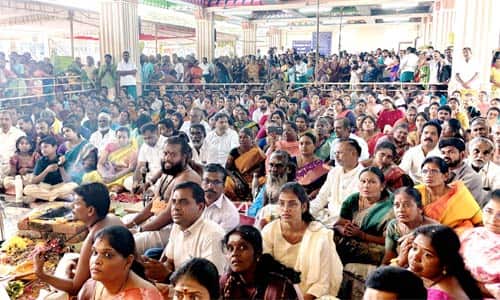 பழநி; பழநி, கோயிலில் கந்தசஷ்டி விழாவில் திருக்கல்யாண உற்ஸவம் நடைபெற்றது. பழநி கோயிலில் காப்பு கட்டுதலுடன் கந்த சஷ்டி விழா அக்.22., துவங்கியது. கந்த சஷ்டி திருவிழாவில் அக்.27., கோவிலில் மலைக்கொழுந்து அம்மனிடம் வேல்வாங்குதல் நடைபெற்று, பராசக்தி வேல் மலையிலிருந்து இறங்கி நான்கு கிரி வீதியில் சூரசம்ஹாரம் நடைபெற்றது. வெற்றி விழாவிற்கு பின் கோயிலில் இரவு சம்ரோட்சன பூஜைக்கு பின் அர்த்தஜாம பூஜை நடைபெற்றது. இன்று (அக்.28.,ல்) கோயிலில் திருக்கல்யாண மண்டபத்தில் வள்ளி, தெய்வானை, சண்முகருக்கு 16 வகையான அபிஷேகங்கள் நடைபெற்றன. அமிர்தலிங்கம்குருக்கள், செல்வசுப்ரமணியம் குழுவினர் யாக குண்டத்தில் வைக்கப்பட்ட கலசங்களில் உள்ள புனித நீரில் சண்முகர், வள்ளி, தெய்வானைக்கு அபிஷேகம் நடைபெற்றது. மங்கள வாத்தியங்கள் முழங்க காலை 10:50 மணிக்கு சண்முகர்,வள்ளி, தேய்வானைக்கு மாங்கல்யதாரணம், செய்து திருக்கல்யாணம் நடந்தது. திருக்கல்யாண உற்ஸவம், திரளாக கலந்து கொண்ட பக்தர்களின் அரோகரா கோசத்துடன் நடை பெற்றது. மலர் மாலை மாற்றுதல் நடைபெற்றது திருமணகோலத்தில் சண்முகர்,வள்ளி, தெய்வானைக்கு சிறப்பு தீபாராதனை நடைபெற்றது. பழநி கோயிலில் வெளிப்பிரகார பகுதியில் சண்முகர், வள்ளி தெய்வானை புறப்பாடு நடைபெற்றது. திருக்கல்யாணத்திற்கு பின் சிறப்பு அன்னதானம் நடைபெற்றது. மாலை பெரியநாயகி அம்மன் கோவிலில் வள்ளி, தேய்வானை, முத்துக்குமாரசுவாமிக்கு திருக்கல்யாணம் நடைபெற்றது. அதன்பின் சுவாமி தங்க குதிரை வாகனத்தில் எழுந்தருளினார். நிகழ்ச்சியில் கோயில் இணை கமிஷனர் மாரிமுத்து, பழநி கோயில் அறங்காவலர் குழு தலைவர் சுப்பிரமணியன் மற்றும் அறங்காவலர்கள், முக்கிய பிரமுகர்கள் பலர் கலந்து கொண்டனர்.