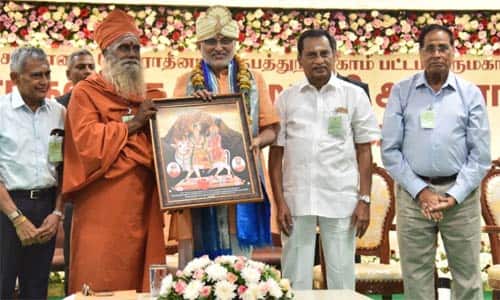 தொண்டாமுத்தூர்; பேரூர் ஆதினம் மடத்தில் நடந்த, சாந்தலிங்க ராமசாமி அடிகளாரின் நூற்றாண்டு நிறைவு விழாவில், இறைவன் என்பதை உணரத்தான் முடியும். கண்களால் பார்க்க நமக்கு இந்த யுகம் போதாது என, துணை ஜனாதிபதி சி.பி.ராதாகிருஷ்ணன் தெரிவித்தார். பேரூர் ஆதினம் 24ம் பட்டம் சாந்தலிங்க ராமசாமி அடிகளாரின் நூற்றாண்டு நிறைவு புகழரங்கம் விழா, பேரூர் ஆதின மடத்தில் உள்ள முத்தமிழரங்கத்தில் நேற்று நடந்தது. இவ்விழாவின் துவக்கமாக, குத்துவிளக்கு ஏற்றப்பட்டது. தொடர்ந்து, தேசியகீதம் மற்றும் தமிழ்த்தாய் வாழ்த்து பாடப்பட்டது. இவ்விழாவில், பண்ணாரி அம்மன் குழுமத்தின் தலைவர் பாலசுப்பிரமணியம் வரவேற்புரையாற்றினார். தொடர்ந்து, பேரூர் ஆதினம் சாந்தலிங்க மருதாசல அடிகளார் தலைமை வகித்து, ஆசியுரையாற்றினார். இதில், சிறப்பு விருந்தினராக துணை ஜனாதிபதி சி.பி.ராதாகிருஷ்ணன் கலந்து கொண்டார். அவருக்கு, பொன்னாடை போர்த்தி, மயில் தோகை மாலை மற்றும் தலைப்பாகை அணிவித்து பேரூர் ஆதினம் சாந்தலிங்க மருதாசல அடிகளார் கவுரவித்தார். தொடர்ச்சியாக, 24ம் பட்டம் சாந்தலிங்க ராமசாமி அடிகளாரின் திருவுருவ படத்தை, துணை ஜனாதிபதி சி.பி.ராதாகிருஷ்ணன் திறந்து வைத்து, வழிபட்டார். விழா நிறைவடைந்தபின், பேரூர் திருமடத்தில் உள்ள சாந்தலிங்கர் சன்னதியில் வழிபாடு நடத்தினார். இவ்விழாவில், பா.ஜ., மாநில தலைவர் நயினார் நாகேந்திரன், பா.ஜ., தேசிய மகளிரணி தலைவர் வானதி சீனிவாசன், கே.எம்.சி.ஹெச்., மருத்துவமனையில் தலைவர் நல்லா ஜி பழனிசாமி, ரூட்ஸ் நிறுவனத்தின் இயக்குனர் ராமசாமி உள்ளிட்ட ஏராளமானோர் கலந்து கொண்டனர். இவ்விழாவில், துணை ஜனாதிபதி சி.பி. ராதாகிருஷ்ணன் பேசுகையில்,"எந்தக் கடமையையும், உள்ளபூர்வமாக, உணர்வுபூர்வமாக, ஈடுபாட்டோடு செய்பவர்கள் ஒருபோதும் குறிப்பு வைத்துக் கொண்டதாக வரலாறு இல்லை. பேரூர் என்றாலே புனிதம். அந்த புனிதத்திற்கு புனிதம் சேர்க்கின்றது பேரூர் ஆதினம். விளம்பர யுகத்தில், எந்த விளம்பரத்திற்கும் அடிபோகாமல் இருக்கின்ற ஒரே ஆதினம், பேரூரதினம். தனிநபர் ஒருவருக்கு பிரச்சனை என்றால் ஆதினத்திற்கு வரலாம். ஆதினத்திற்கே பிரச்சனை என்றால், பேரூர் ஆதினத்திற்குதான் வர வேண்டும். நம்பிக்கைதான் வெற்றி அடையாளம். கடினமாக உழைக்கிறோம் வெற்றி உடனே கைக்கு வருவதில்லை. அப்போது, கடவுள் எங்கே என கேட்கிறோம். நமது உழைப்பும், உணர்வும், சத்தியத்தின் மீது இருக்கும் என்றால், உள்ளபூர்வமாக இருக்கும் என்றால், அப்பழுக்கற்ற ஈடுபாட்டுடன் இருந்தால், வெற்றி என்பது இறைவனால் கூட தடுக்க முடியாது. கம்பனுடைய கட்டுத்தறியும் கவி பாடும் என்று சொல்வார்கள். அந்த கம்பனுக்கும், ஒரு சடையப்ப வள்ளல் தேவைப்ப