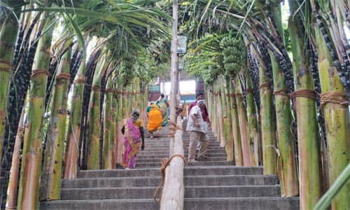 கரும்பு, வாழையில் அலங்காரம்; கந்த சஷ்டி விழாவில் அபாரம்!